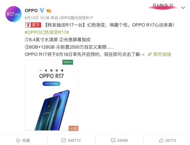 更加让人意外的是,在新品发布会日期尚未公布的情况下,OPPO 直接官宣了 R17 的全部产品特性和参数。