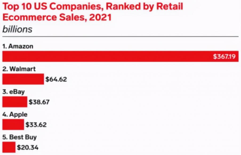 近日,eMarketer 发布了有关美国电商平台的排名: