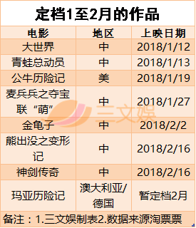 目前定档在2018年1至2月的电影一共8部,在1月上映的有4部。而去年光一月份就定档9部电影。看来今年初的动画电影市场有所降温。