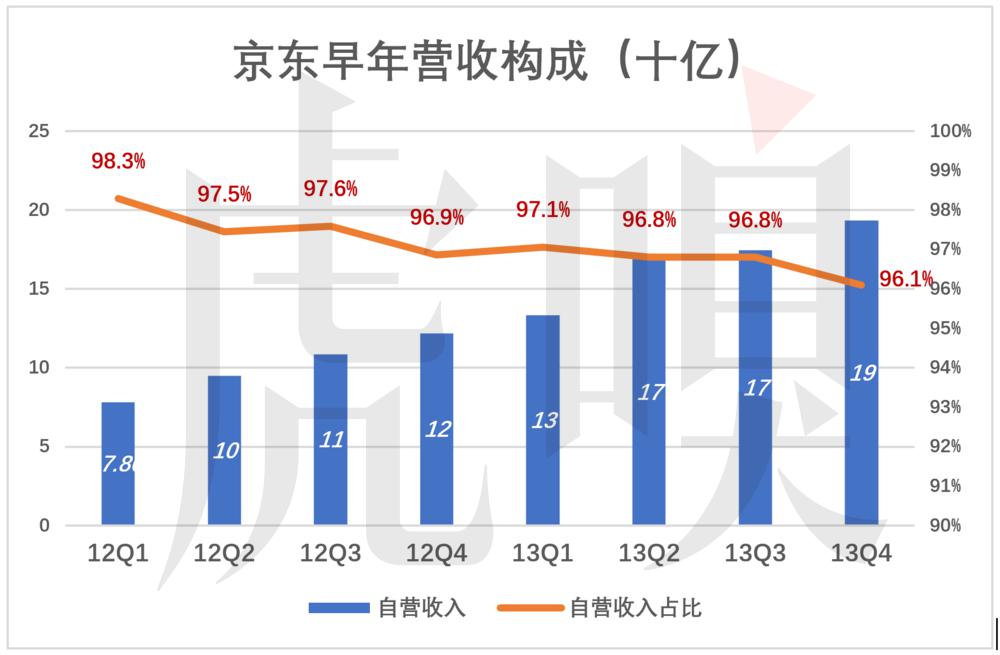 早年自营业务收入占京东总营收 95% 以上。