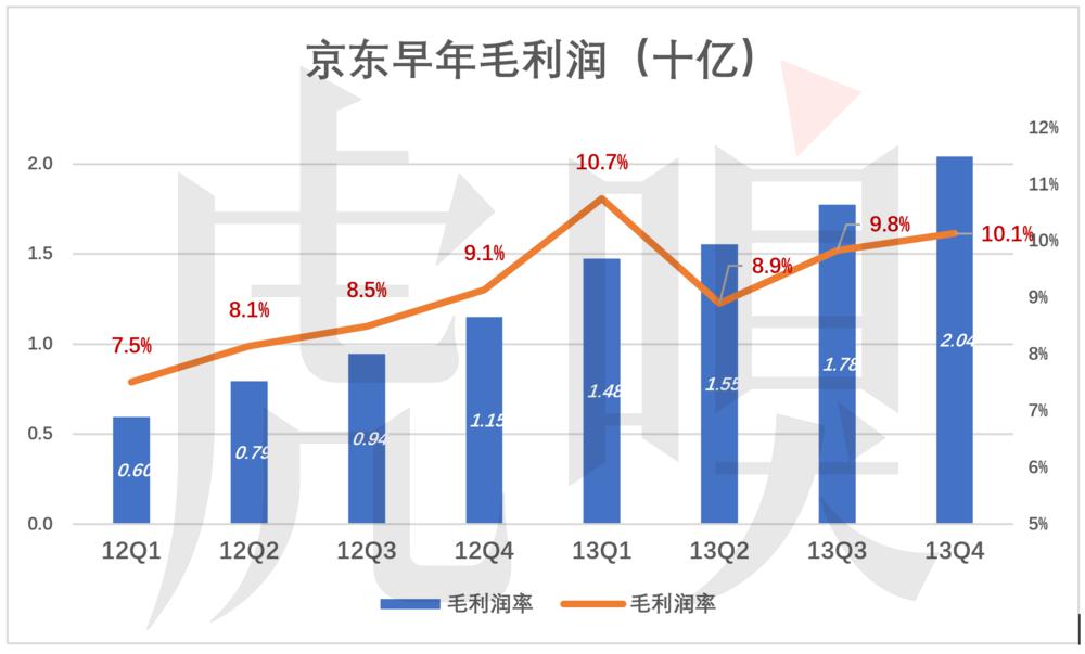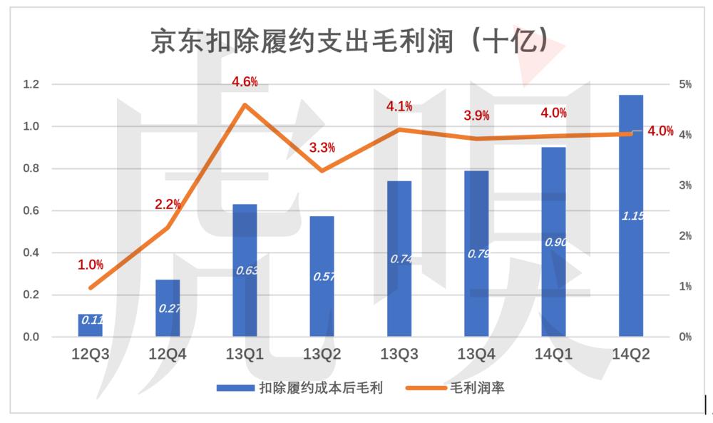 (注:亚马逊开了个坏头,将履约支出归入费用而不是在计算毛利润率扣除的成本。以自建、自营物流为卖点的京东,履约的重要性无以附加,计算毛利润时理应扣除履约支出。)