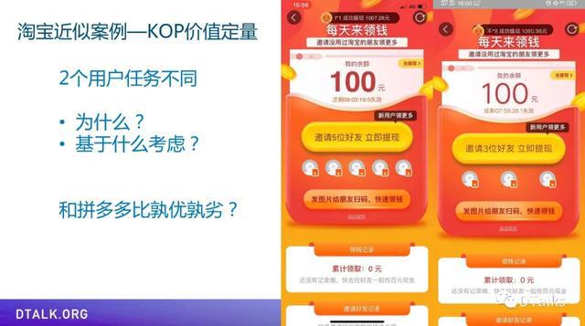淘宝曾经在 KOP 比较明确的情况下,对于两个不同用户组提供了不同的提现刺激。
