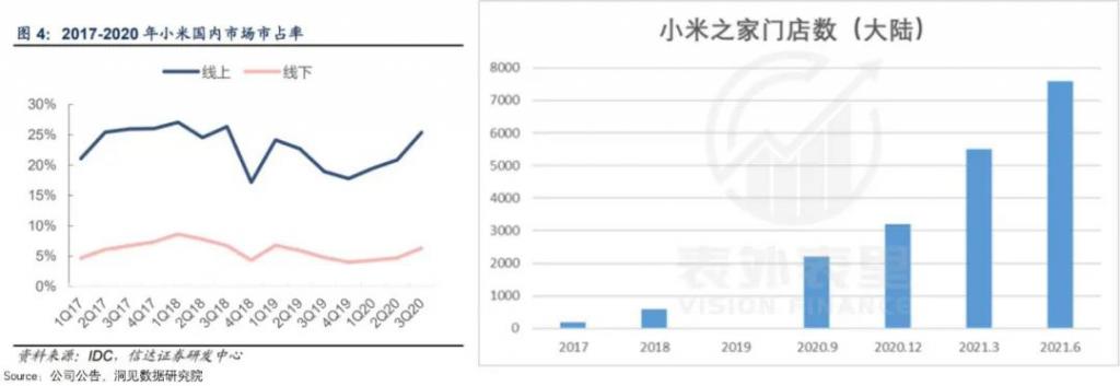 可以看到,从 2020 年 11 月开始,小米线下门店高速扩张,平均每月新增 1000 家左右。截止 2021 年 6 月底,门店总数超过 7600 家。