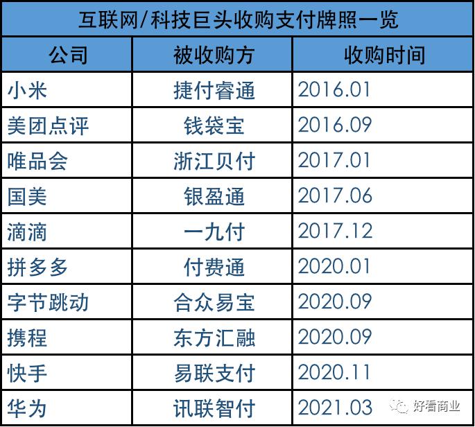 对于 2016 年及之后才开始布局支付业务的互联网公司来说,要获得支付牌照,只有一种方式——收购。
