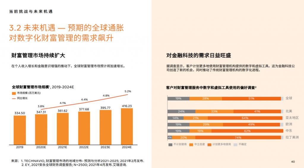 据安永的一份报告显示,全球超过一半的客户对财富管理服务中数字和虚拟工具表达了接纳态度,其中新兴市场的欢迎程度更是瞩目。其原因大致来源于三个方面。