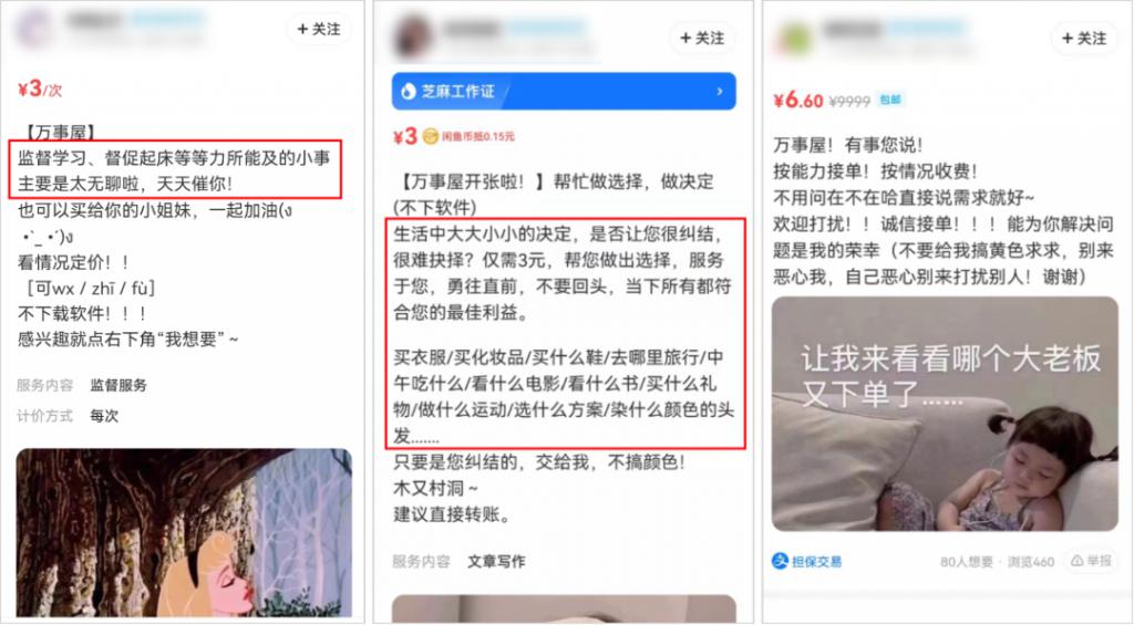 他们在闲鱼或者各大社交平台上开一家「万事屋」,自称是工具人——在线帮忙的人。
