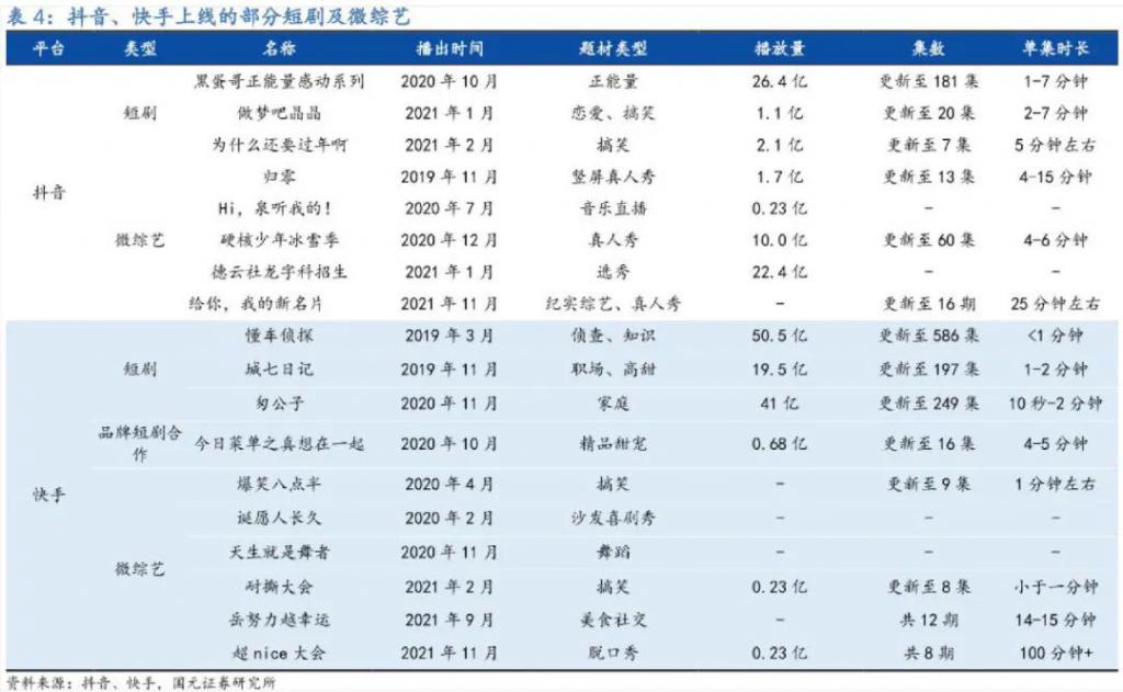 这反映到结果上,快手的短剧,数量和题材较丰富,包括侦查、职场、家庭、甜宠等,价值观趋向多元。据 2022Q1 电话会:目前已累计推出了近 12,000 部短剧,拥有 350 部头部优质短剧。