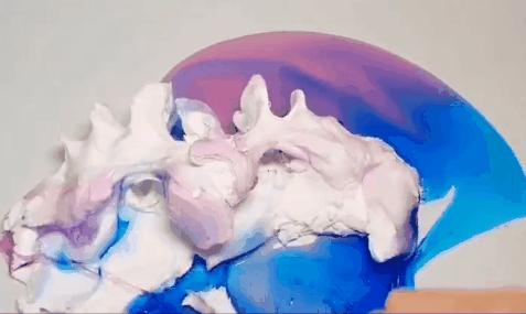 视频里,玩史莱姆的 " 泥圈 po 主 " 就像糖瓜师傅处理麦芽糖浆,双爪齐下,抓揉、提拉、戳刺,短则几分钟,长则几小时,史莱姆起泡、变色、拉伸,噗噗啪啪变得颜色均匀、和谐统一。