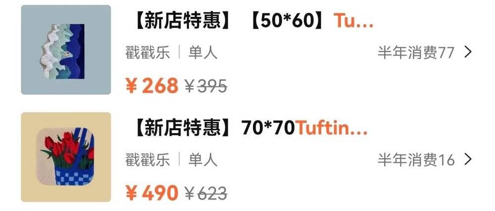 根据《天下网商》报道,一家 tufting 店,平均客单价 400-500 元," 平日里客人络绎不绝,周末店里更是 20 组绣架全部满员,需预约才有位 ",旺季时,月收入能达七八万元。