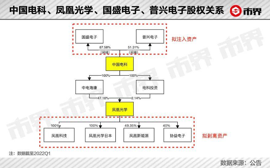 中电海康是凤凰光学的直接控股股东,截至 2022 年一季度末直接持有凤凰光学 47.16% 股权。同时,中电海康又是中国电科的全资子公司。