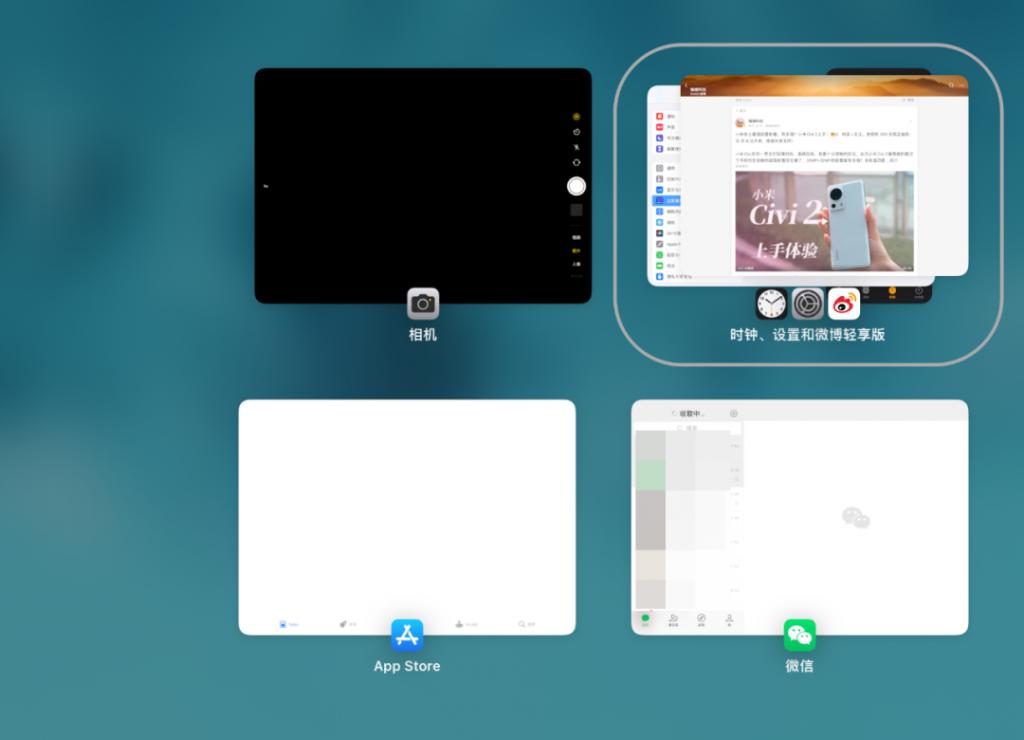 这个时候,刚才正在台前调度中运行的 App,会自动成组,显示在最近任务中,方便返回。
