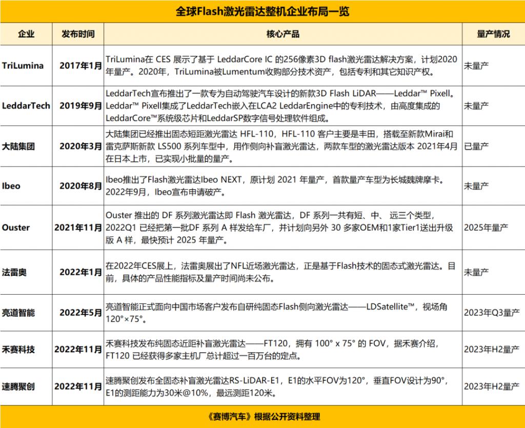 Flash 激光雷达不是最近才 " 走红 " 的,据《赛博汽车》不完全统计,截至目前,全球公开宣称布局 Flash 激光雷达的整机企业已超过 10 家。