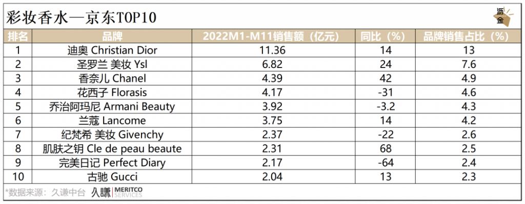 彩妆香水2021年与2022年销售额及同比