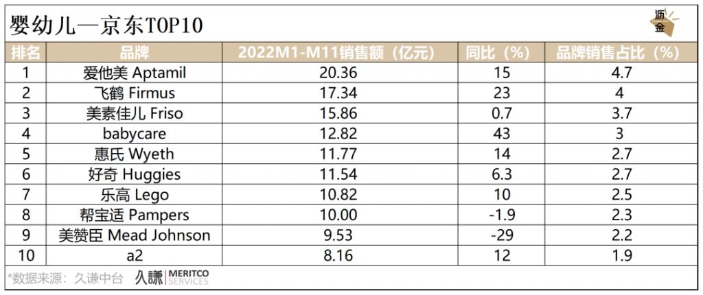 京东平台中,爱他美、飞鹤分别排名第1、第2,呈现高增长;国外巨头美赞臣销售下滑,有待后续调整销售策略。