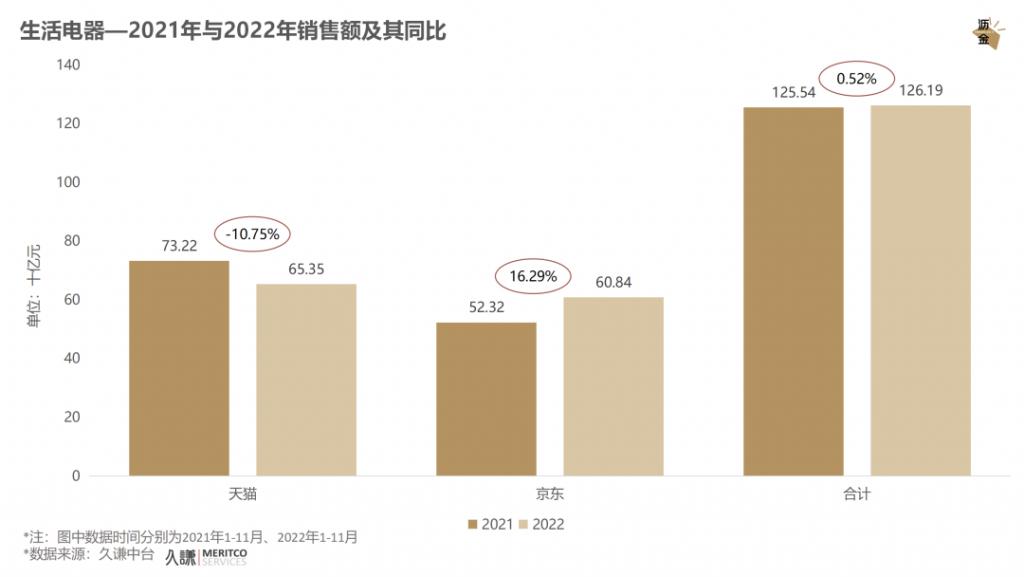 生活电器2021年与2022年销售额及同比