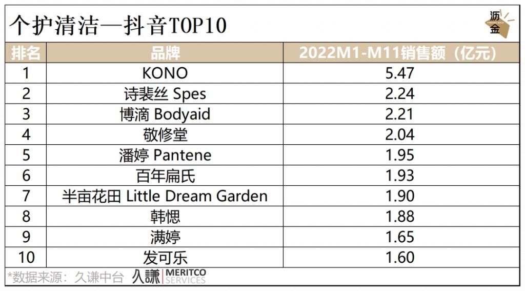 抖音平台中,KONO、诗裴丝和博滴位于销售榜前3。