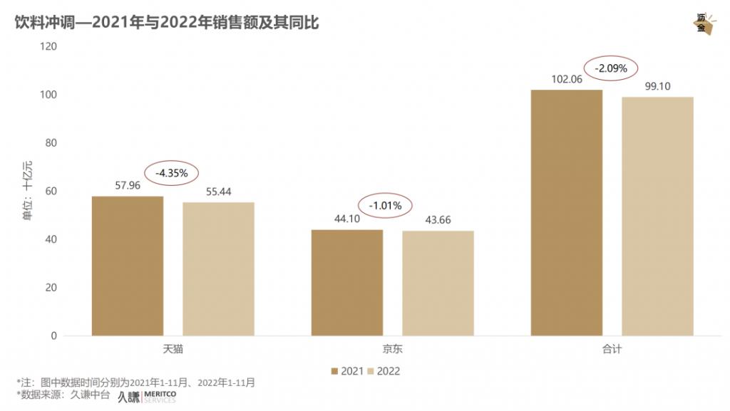 饮料冲调2021年与2022年销售额及同比