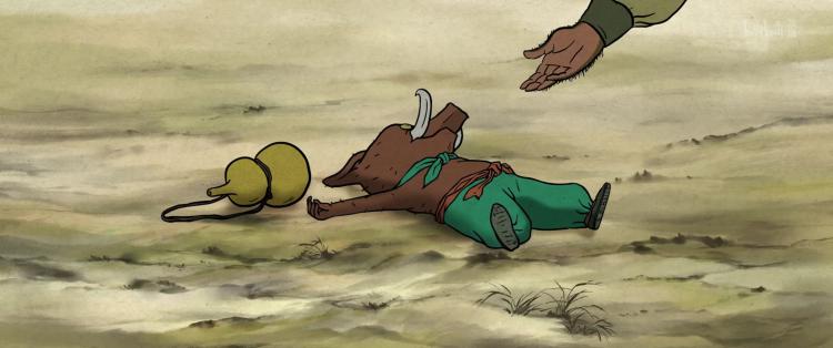 《中国奇谭》中有大量情节都进行了留白处理。就比如《鹅鹅鹅》里,当鹅妖女子消失的时候,导演没有给送货郎一句台词,也没有设计任何的表情动作来显示哀伤,只是让他捡起了女子丢在地上的一只耳环,而当他捡起这只耳环后,耳环却一点点消失在他手中;再比如《小妖怪的夏天》里,处处都有齐天大圣的影子,可除了声音和剪影,大圣却一直未曾出现在画面里。