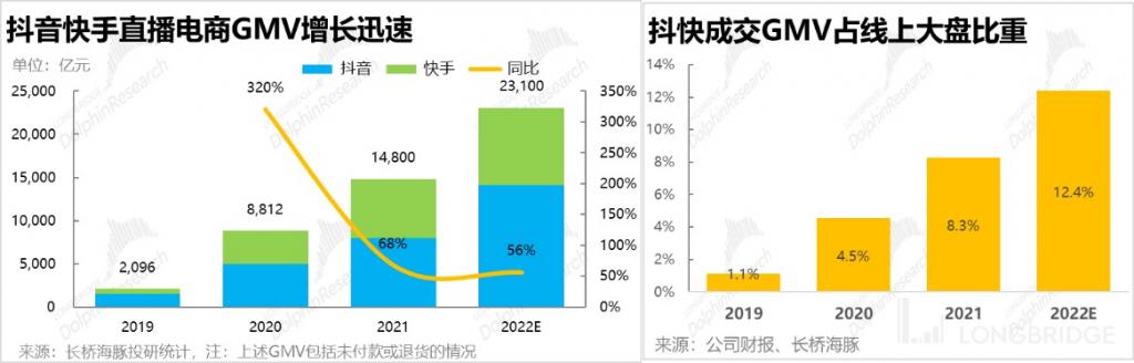 若两家公司能实现今年的目标,那么2023 年抖快的电商整体 GMV 增速会从去年的约 56% 略下降到 41%,但 GMV 绝对增量实际由去年的 8300 亿增加到 9400 亿,即直播电商的增长势头不会明显放缓,但上述指引只是抖快、两家公司的 " 期望 ",明年能否实现有待观察。