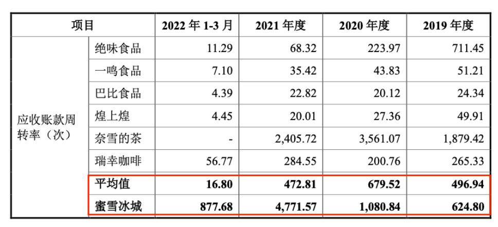 轻资产型的加盟模式能为公司提供更稳定的现金流。根据蜜雪冰城披露的 IPO 数据,其应收账款周转率远超行业平均水平,反映出回款速度快、资金流动性强的特点,可谓 " 躺着就能赚钱 "。
