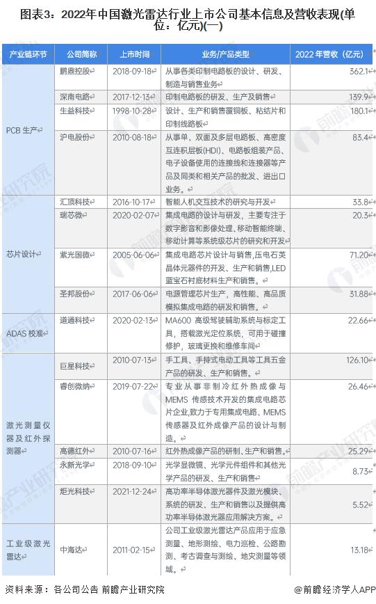 1、激光雷达行业上市公司汇总