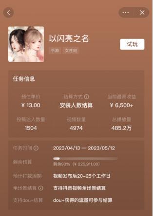 3、三七女性向新游,或以买量入局?此前,DataEye 研究院统计过今年获取版号的女性向新游,其中部分已上线。值得关注的是 " 买量大户 " 三七不再只专注 MMORPG+SLG 为,踏足女性向。《扶摇一梦》已于今年 3 月开启预约,4 月 25 号开启删档测试。从社媒平台来看,还未上线就已经做起了联动,是否会继承三七一贯传统,以买量入局?是否会给女性向赛道带来格局变化,依然值得期待。