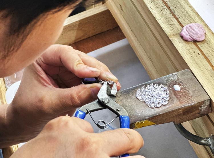 义乌跨境卖家的饰品做工精美,与外界印象中的低价小商品大相径庭 / 图源:郝曼摄