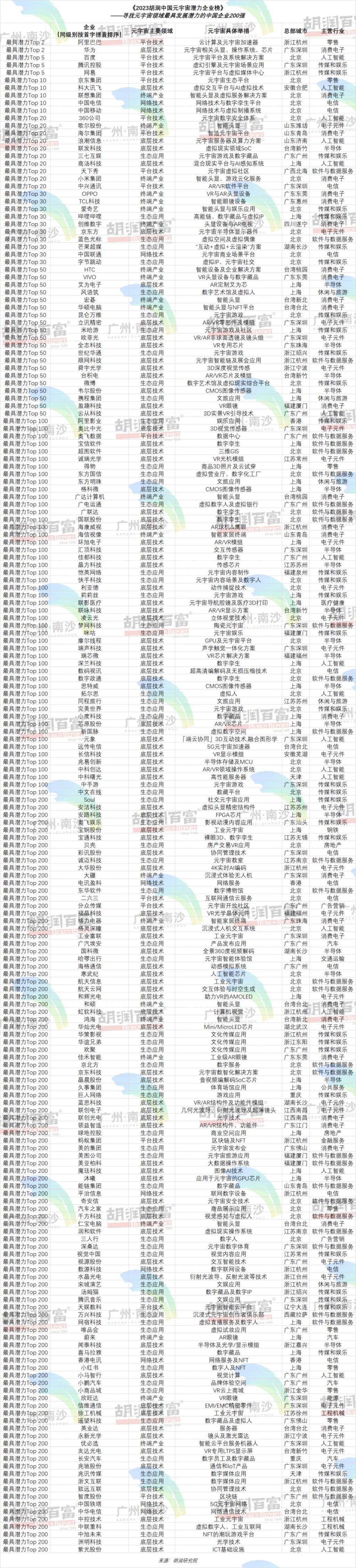 " 过去一年,中国的元宇宙发展更加务实了。" 胡润百富董事长兼首席调研官胡润如此说道。务实,是中国民营企业的标签之一。7 月 20 日,胡润研究院在广州发布《2023 胡润中国元宇宙潜力企业榜》,列出了元宇宙领域最具发展潜力的中国企业 200 强。