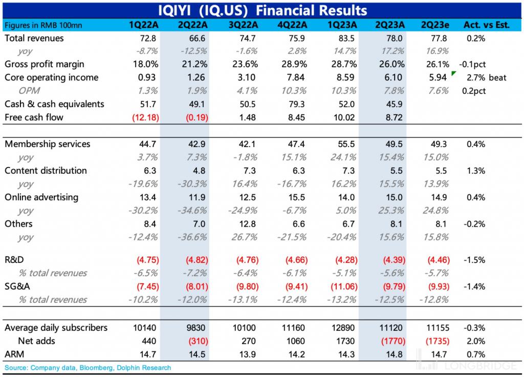 另外,爱奇艺的广告收入也不赖,在内容供给相比同行较弱下也有 25% 的增长,只是机构预期得比较充分。