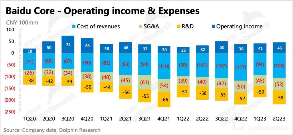 先说总体观感:百度核心的业绩在广告收入的带动下,整体小超预期。同时因为广告的高毛利率,以及经营提效(控费裁员等),因此尽管有 AI 的部分研发投入确认,但核心业务的盈利水平仍然比预期更好一些。