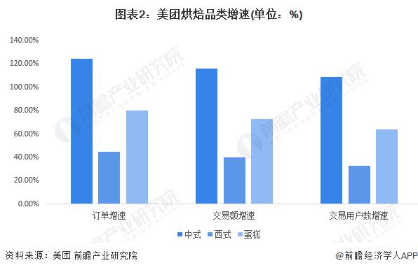 中式烘焙受益于烘焙行业的发展以及国潮风的兴起,各类型中式糕点产品逐渐受到年轻人的追捧。美团《2022 年烘焙品类发展报告》显示,2021 年中式糕点的在订单数量、交易额和交易用户数方面同时增长迅速,且超过西式糕点和蛋糕品类。