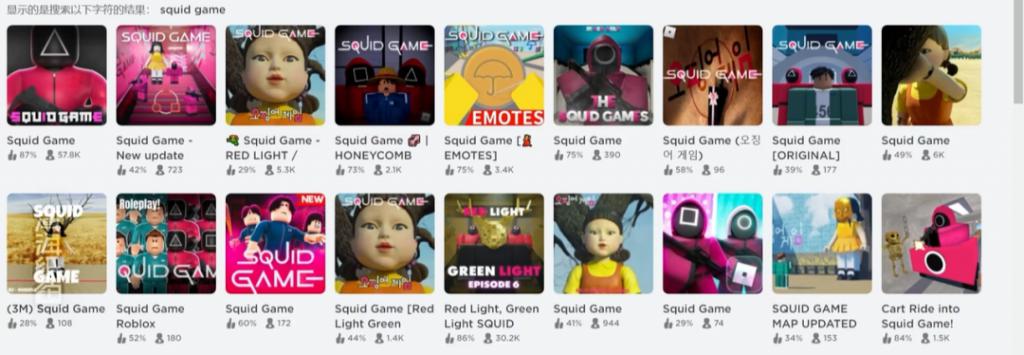 " 快 ",是吸引 Z 世代乃至 α 世代年轻人最有效的方式。例如在剧集《鱿鱼游戏》爆红的时间点,Roblox 上就出现了大量相关的小游戏,经过了短时间的 " 笼斗 " 之后,玩家们就会集中在感兴趣的几个产品内。与此同时,游戏视频博主为了能够蹭到鱿鱼游戏的热度,制作 Roblox 中鱿鱼游戏的闯关视频,加速 Roblox 在游戏域外的传播。
