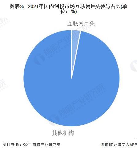 近年来,随着各大互联网巨头崛起,许多互联网巨头也开始参与国内创投领域,根据数据统计 2021 年国内互联网巨头参与投资 444 起,较 2020 年增加了 178 起,同比增加 66.9%,占 2021 年投资 3% 左右。