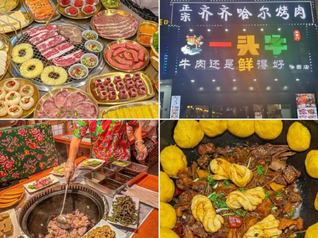 值得一提的还有齐齐哈尔烤肉,前不久,2024 年黑龙江省首趟哈尔滨—齐齐哈尔烤肉专列启动运行,或许不久后,齐齐哈尔烤肉也将迎来一波热度。据此前公开资料显示,齐齐哈尔烤肉已入选齐齐哈尔市非物质文化遗产,齐齐哈尔烤肉全产业链规模突破 200 亿元,全国齐齐哈尔烤肉门店已达 2.1 万家。一家烤肉餐厅负责人介绍,他所经营的品牌烤肉餐厅正在探索 " 烤肉 + 咖啡 "、" 烤肉 + 西餐 "、" 烤肉 + 露营 " 等模式,不断跟随时代的步伐做创新。