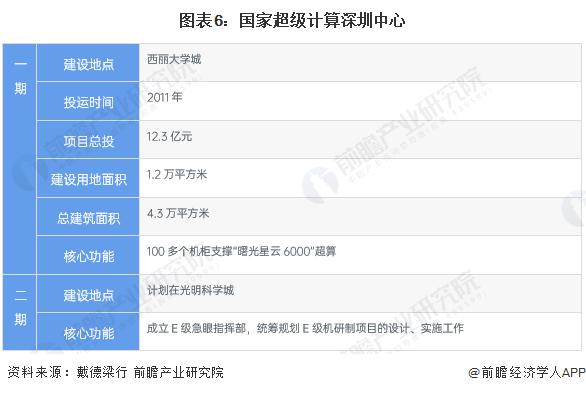深圳市数字经济发展载体主要为高新技术产业园,包括宝安园区、龙华园区、龙岗园区、坪山园区、南山园区。其中,南山园区、坪山园区的在新一代信息技术、第三代半导体等于数字经济高度相关的产业方面具有较为全面的布局。在西丽大学城,建设有国家超级计算深圳中心 ( 深圳超算 ) ,一期总投 12.3 亿元,占地面积 4.3 万平方米,拥有 100 多个机柜支撑 " 曙光星云 6000" 超算。二期项目将落户光明科学城,二期项目成立了 E 级机研制指挥部,统筹规划 E 级机研制项目的设计、实施工作。
