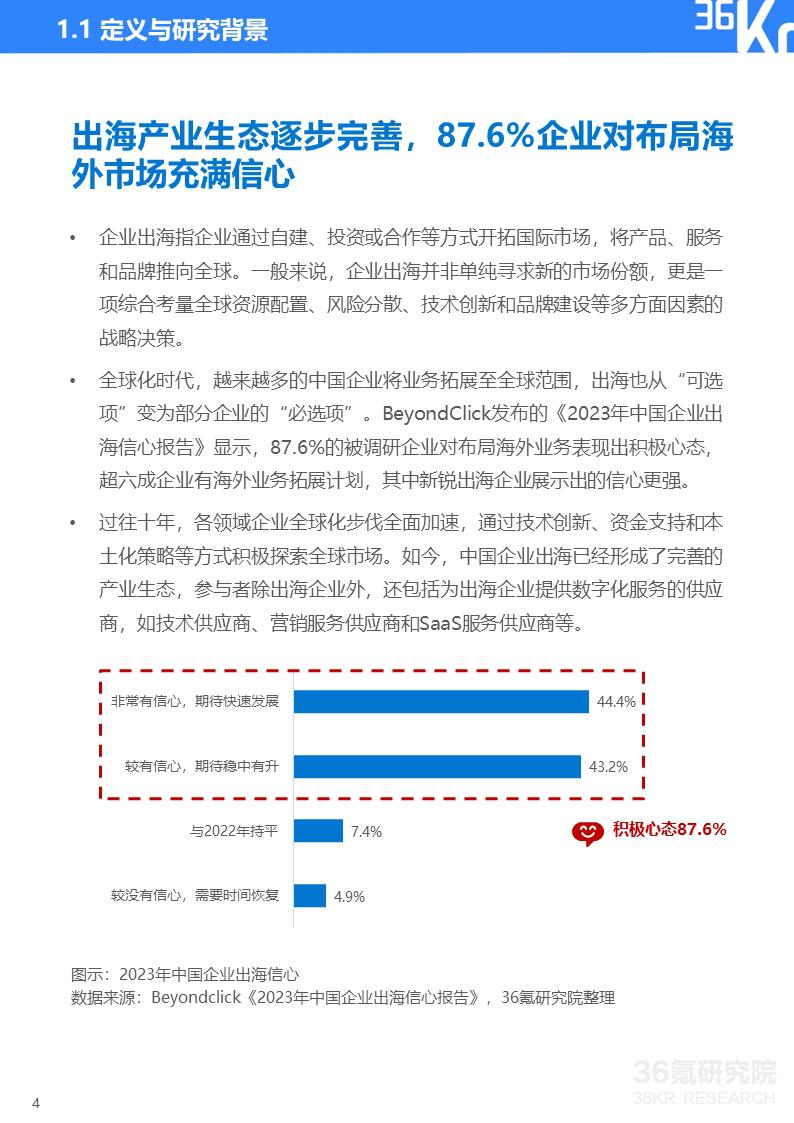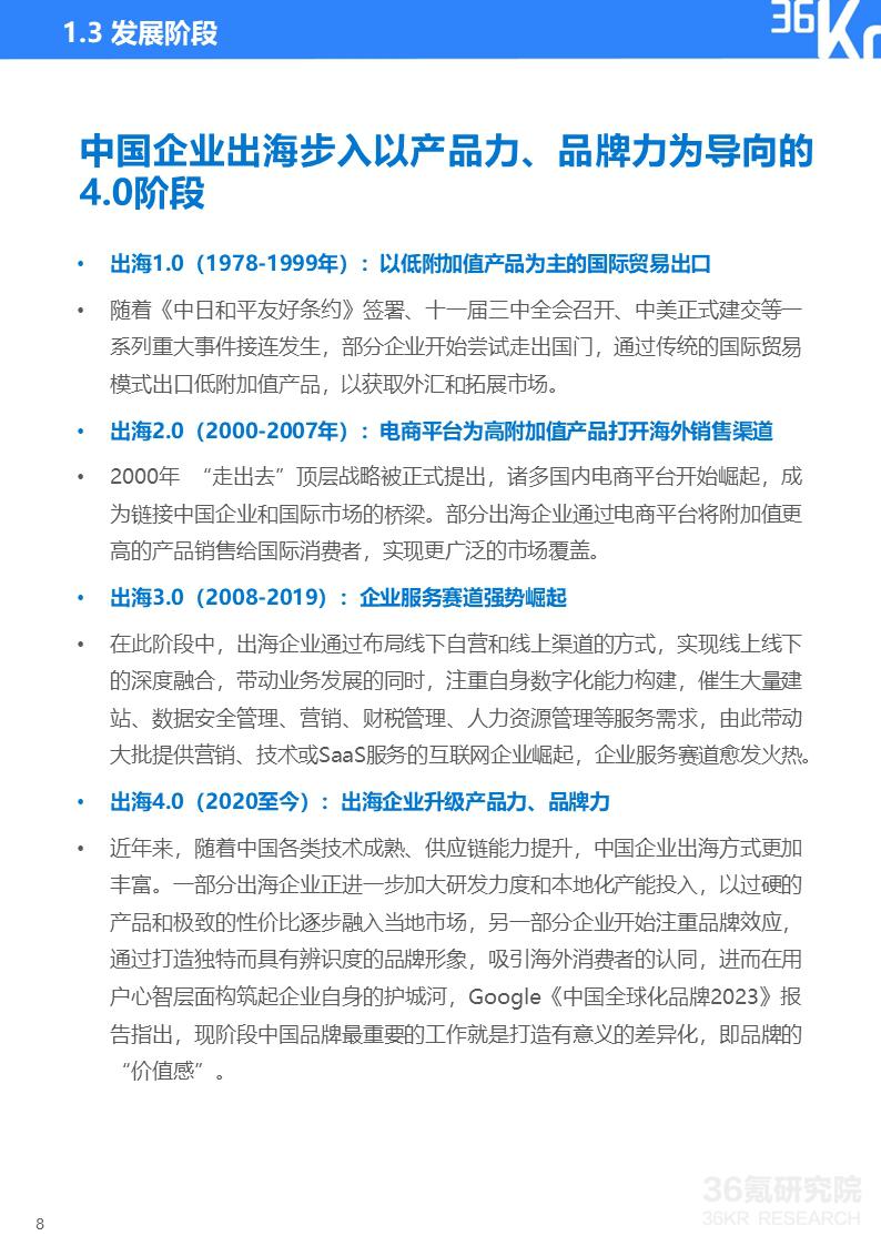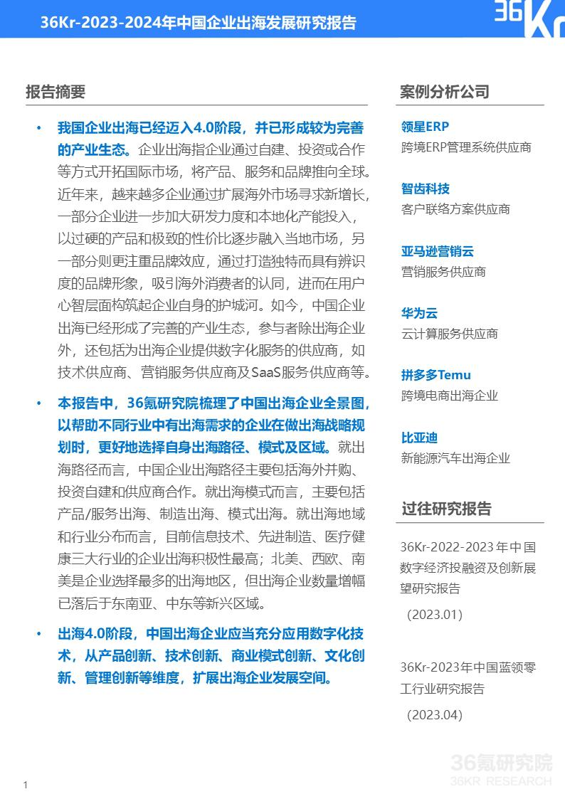 更多精彩内容,请关注 "36 氪研究院 " 微信公众号。如想获取《2023-2024 年中国企业出海发展研究报告》,点击下载链接,提取码 : qhcu,或在 36 氪研究院微信公众号上回复 " 出海 " 获取下载链接。