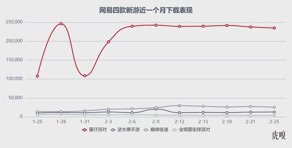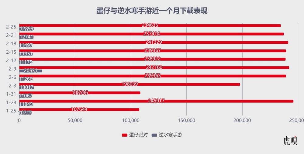 按理说,《蛋仔派对》跑出的大 DAU(Daily Active User,日活跃用户数)、轻社交特性恰恰符合腾讯过往的游戏产品路径和流量优势——但游戏营销最火热的寒假春节档过后,《元梦之星》和《蛋仔派对》的差距正在悄然拉开(元梦与蛋仔近 40 天 IOS 端下载表现见上图,深度分析戳虎嗅此前报道《腾讯算是踢到钢板了》)。