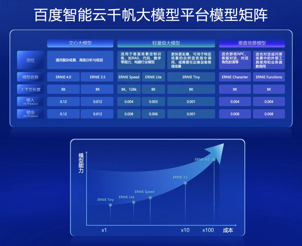 他还提到,本次发布的三款模型都是开发专家模型的基座模型,主要面向两个场景:一是客户、合作伙伴结合自己的数据,去做垂类场景模型。二是百度也会基于这些小的基座模型,去开发第一方的行业垂类场景模型,比如做教育行业的教辅答题和解题,可以用一个小尺寸的模型加上一些数据,精调出一个效果很好的解题助手模型。