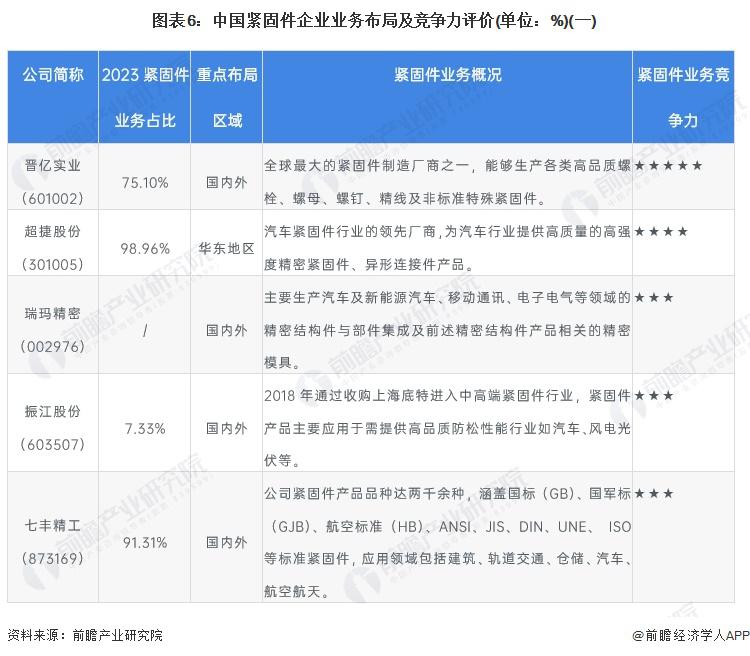 4、中国紧固件行业企业布局及竞争力评价