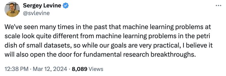 首先必须介绍的是除 Chelsea Finn 和 Karol Hausman 的另一位联创Sergey Levine。