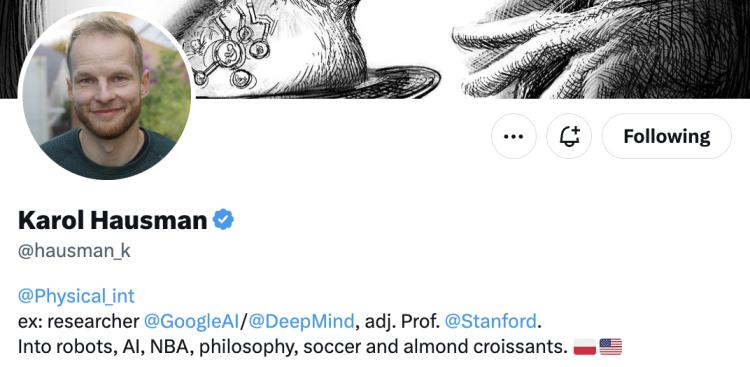 Pi 的首席执行官Karol Hausman是谷歌大脑的高级研究科学家,同时也是斯坦福大学的兼职教授。他的研究兴趣集中在使机器人能够在真实世界中以最小的监督自主获得通用技能,并因 " 对可扩展的机器人学习算法做出重大贡献 " 而获得 2023 年 IEEE 机器人与自动化学会行业职业奖。