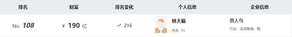 2015 年,林天福也以 190 亿元的身家成为 " 泉州首富 ",远超当时安踏创始人丁世忠的 112 亿元。