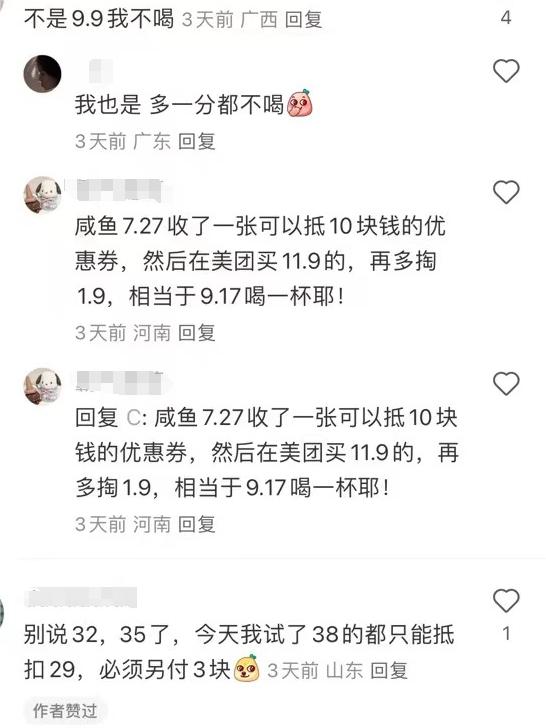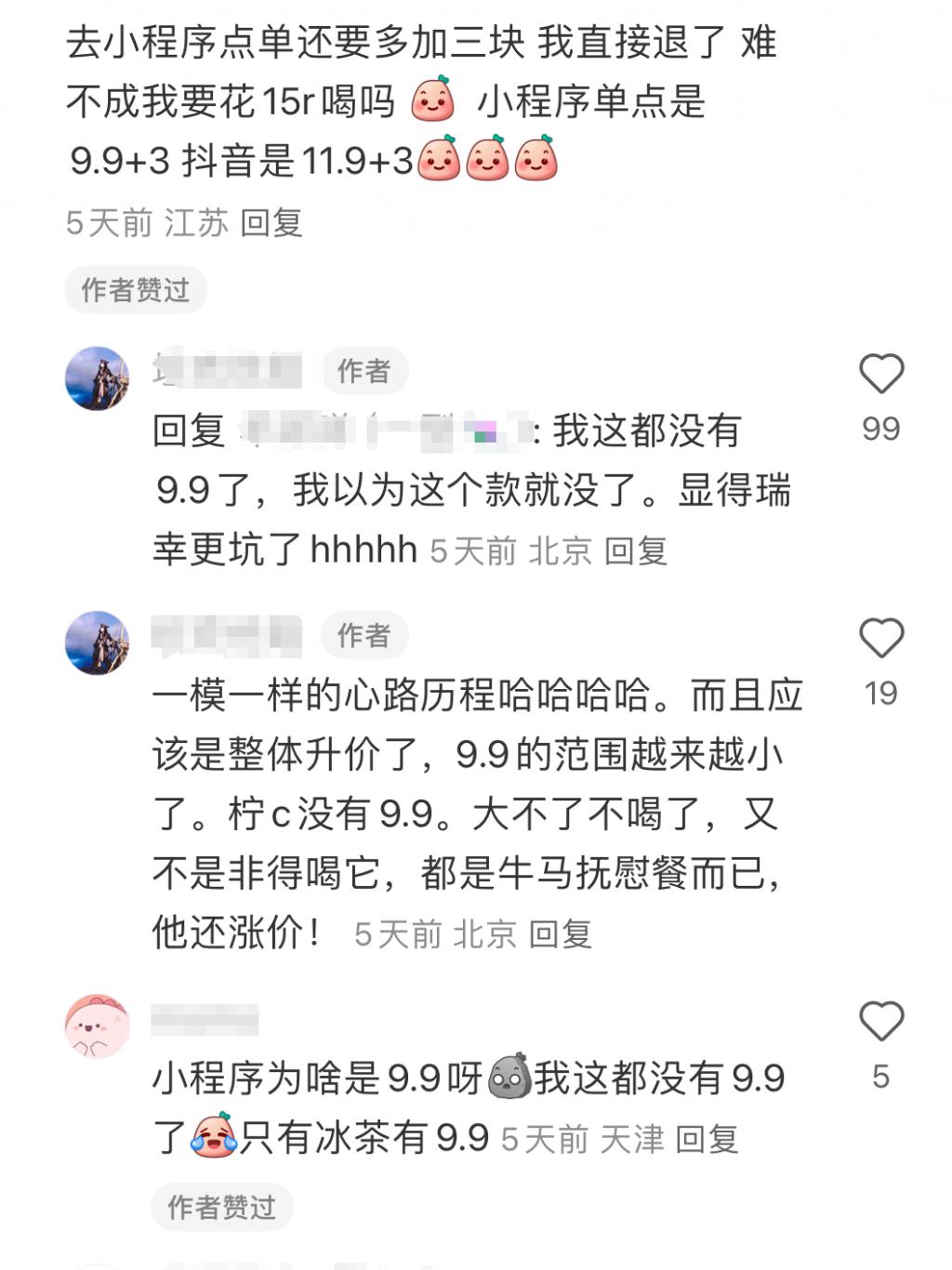为此有人不解:调价或促销与否都是商家的自由和正常市场行为,消费者怎么还「矫情」到抗议联盟的程度了呢?即便没有 9.9 优惠券,一杯 13.9 元的生椰拿铁,跟星巴克比起来也是便宜很多了。
