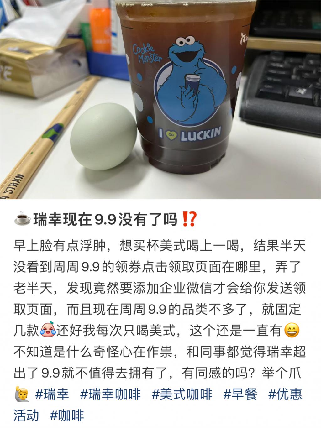 悄悄消失的 9 块 9 优惠券,恰好戳中了消费者的敏感神经。瑞幸或许也高估了好不容易培养起来的会员忠诚度。