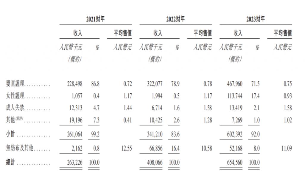 压减成本、压缩利润、打价格战是竞争激烈的行业主旋律。仅拿婴童护理产品来说,舒宝国际 2023 年婴童护理产品平均售价仅 0.75 元。同样在今年递表的新世好母婴,单片尿不湿最低售价仅有 0.67 元。