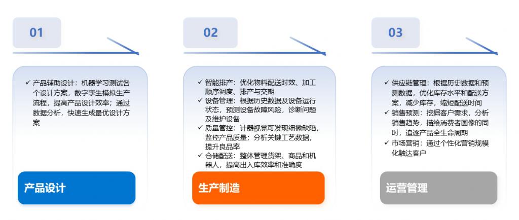 生产制造:AI 应用于优化生产、节能减排、精准分拣、智能质检与仓储管理,全面助力生产制造升级