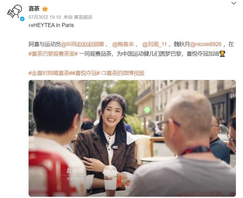 今年的巴黎奥运会,现制茶饮品牌意外 " 露脸 ";霸王茶姬在巴黎圣拉扎尔火车站的 TEA BAR 线下快闪店免费送饮品,喜茶在塞纳河右岸的快闪门店 " 喜茶巴黎观赛茶室 " 开派对。即便是没有获得官方合作身份、没有和任何运动员携手共创的品牌,依然有方法将自己与赛事进行强链接。