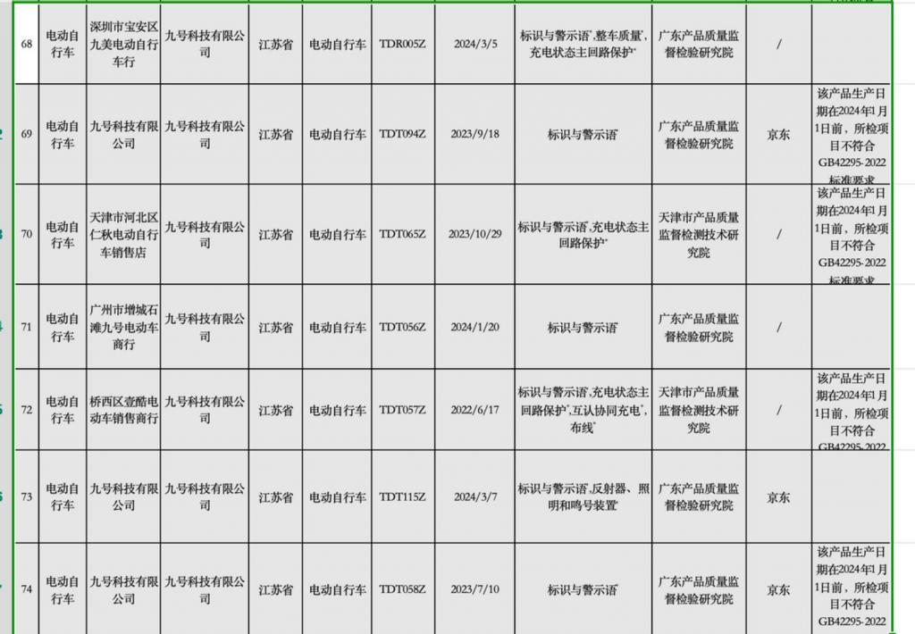 从通报的内容来看,被抽查的九号电自行车存在充电状态主回路保护、整车质量等抽检不合格的问题。