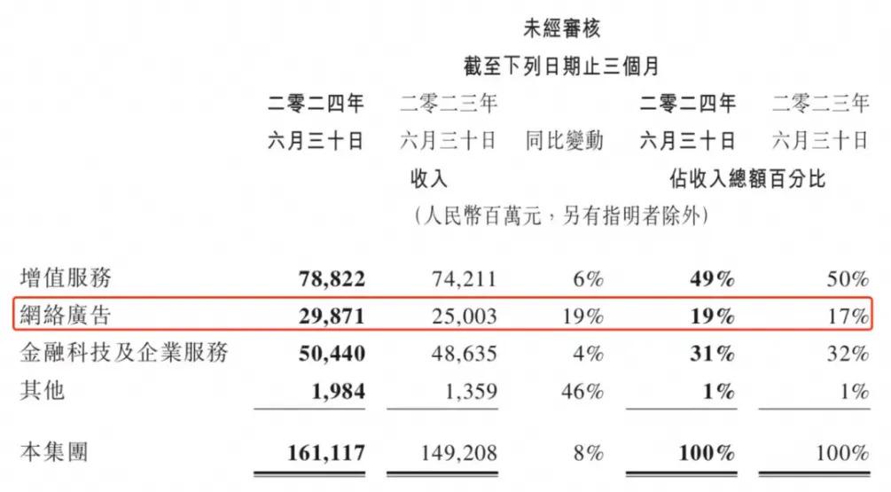 今年二季度,视频号总用户时长同比增长超 20%。视频号在电商、网络广告、金融科技及企业服务等方面,都给腾讯带来了增长贡献。据腾讯二季报,网络广告业务 2024 年第二季度的收入为 298.71 亿元,同比增长 19%,主要受视频号及长视频的收入增长驱动。