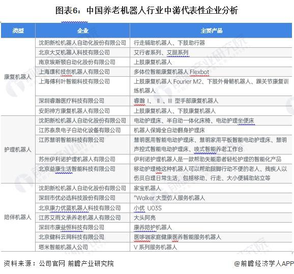 从企业布局情况来看,沈阳新松机器人自动化股份有限公司在康复、护理和陪伴机器人领域均有布局,其余企业布局情况如下:
